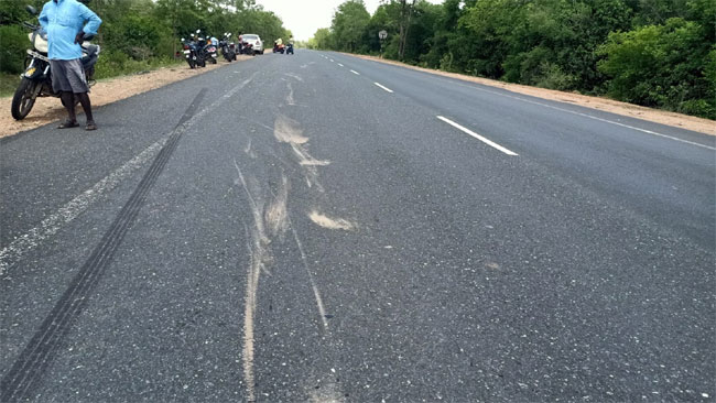 మర్రిపాడు: వేగంగా ప్రయాణిస్తున్న కారును పెద్దపులి ఒక్కసారిగా ఢీకొట్టింది. ఊహించని ఈ పరిణామంతో అందులోని ప్రయాణికులు భయభ్రాంతులకు గురయ్యారు. ఈ ఘటన శ్రీపొట్టి శ్రీరాములు జిల్లా మర్రిపాడు మండలం కదిరినాయుడుపల్లె సమీపంలో నెల్లూరు-ముంబయి హైవేపై చోటుచేసుకుంది. వివరాల్లోకి వెళితే.. బద్వేలుకు చెందిన ఐదుగురు కారులో నెల్లూరు వెళ్తున్నారు. కదిరినాయుడుపల్లె అటవీ ప్రాంతంలో పెద్దపులి రోడ్డు దాటే క్రమంలో ఒక్కసారిగా కారును ఢీకొట్టింది. వేగంగా వస్తుండటంతో పులిని కారు కొంతదూరం ఈడ్చుకెళ్లింది. అనంతరం డ్రైవర్ శ్రీనివాసులు అప్రమత్తమై బ్రేక్ వేశాడు. కారు ఈడ్చుకెళ్లడంతో పెద్దపులి కాళ్లకు తీవ్రగాయాలయ్యాయి. ప్రమాదం తర్వాత సమీపంలోని అటవీ ప్రాంతంలోకి పారిపోయింది.