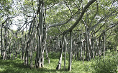 The Thimmamma Marrimanu tree , located in Anantapur district of Andhra Pradesh , is located about 25 km from Kadiri town . The tree’s branches spread over a land of 5 acres and it has a cover of 19,107 sq mtrs . There is a small temple built under the tree which is dedicated to Thimmamma . An account of her life is made in Telugu language and it is kept at the shrine.