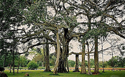 The Thimmamma Marrimanu tree , located in Anantapur district of Andhra Pradesh , is located about 25 km from Kadiri town . The tree’s branches spread over a land of 5 acres and it has a cover of 19,107 sq mtrs . There is a small temple built under the tree which is dedicated to Thimmamma . An account of her life is made in Telugu language and it is kept at the shrine.